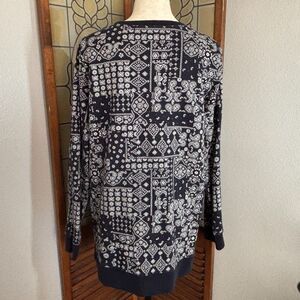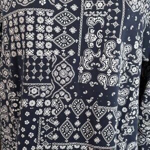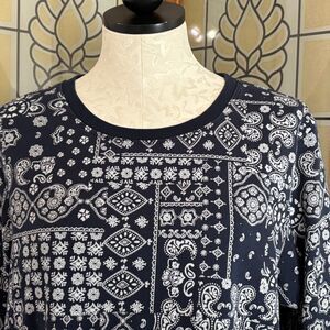 Lands End Serious Sweats Bandana Sweatshirt Navy French Terry Paisley Size L