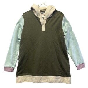 Lands’ End Serious Sweats Color Block Hooded Sweatshirt size L 14-16 Green
