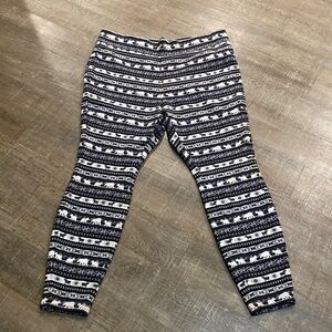 Lands’ End Serious Sweats Fair Isle Polar Bear Knit Lounge Fleece Lined Pants