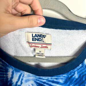 Lands' End Serious Sweats Raglan Sweatshirt Blue Tie Dye Palm Lounge Comfy 2X