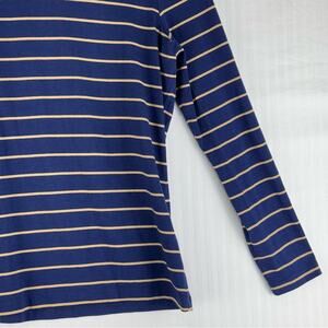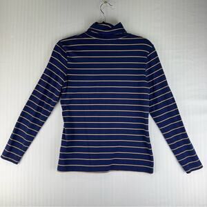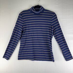 Land’s End Shaped Fit Deep Blue Tan Striped Turtleneck Women Size Medium Petite