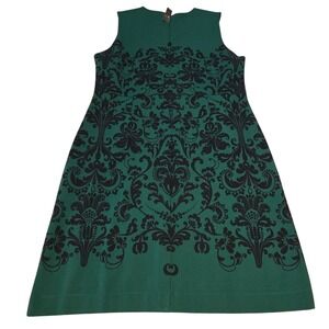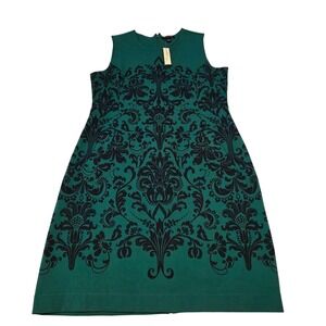 Lands' End Sheath Dress Damask Print Sleeveless Career Work Green Size 14