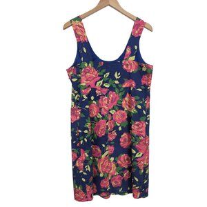 Lands End Sheath Dress Womens 12 Blue Floral Sleeveless Classic Preppy Career