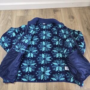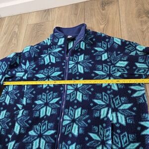 Lands End Sherpa Sweater Womens Large 3XL Blue Full Zip Snowflake Aztec Pattern
