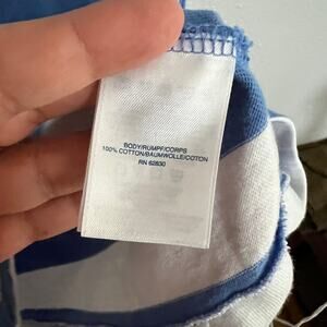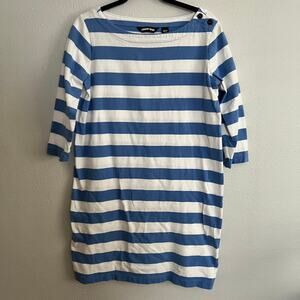 Lands' End Shift Dress Blue White Rugby Striped Button Front 3/4 Sleeve Sz MP