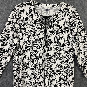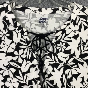 Lands End Shift Knit Dress Women M Lace Up Neckline Floral Knee Length Pockets
