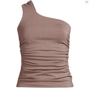Lands’ End Shine Shirred One Shoulder Tankini Swimsuit Top - Size: 4 Long - NWT