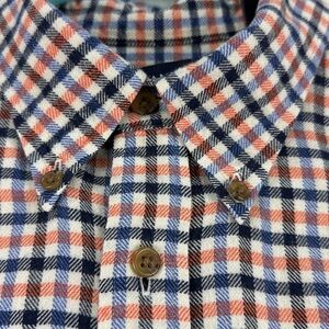 Lands' End Shirt Flannel Button Down Orange Blue Men's Size L