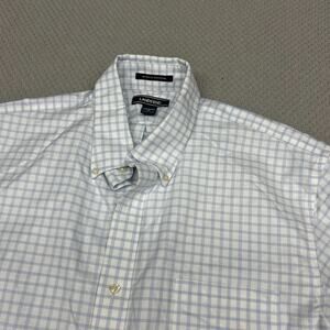Lands End Shirt Mens 16.5 (XL) White Plaid Traditional Fit Button Up Classic