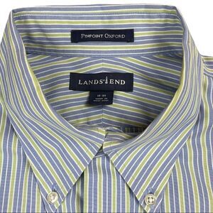 Land’s End Shirt Mens Large L Blue Green Stripe Long Sleeve Button Down Collar