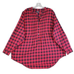 Lands End Shirt Popover Flannel LS Red Blue Plaid Women’s Plus Size 20 Henley