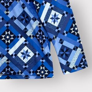 Lands' End Shirt Women PM Blue Geometric Quilt Print Supima Cotton Crewneck i53