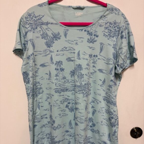 Womens Lands End 100% Cotton Short Sleeve Nightgown. Tropical Theme. 32"L. Sz. 1X
