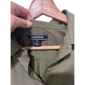 Lands' End Short Sleeve Pocket Olive Green Collared Midi Dress Size 14 Spring