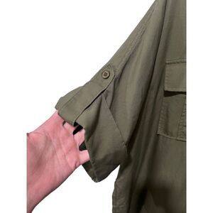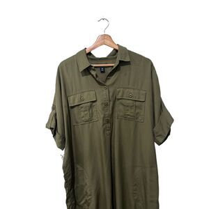 Lands' End Short Sleeve Pocket Olive Green Collared Midi Dress Size 14 No belt included (shown in photos)