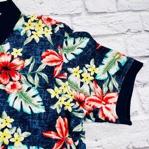 Land's End Short Sleeve Polo Shirt Men's Large Dark Blue Floral Traditional Fit