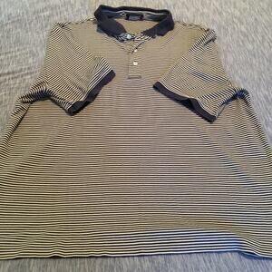 Lands' End Short Sleeve Striped Polo Gray XL 46-48