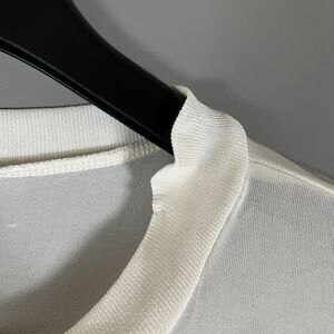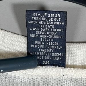 * Flaws: No holes, stains, or tears. The neckline is out of shape from the hanger but I think that should go away after a wash. All measurements are approximate.