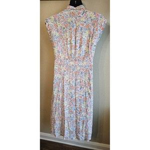 This beautiful Lands' End shirtdress in size 10 is perfect for any occasion. The dress features a lovely floral pattern that is perfect for spring and summer. It also has pockets for convenience and a midi length for a chic and comfortable look. The shirt dress style is flattering and versatile, making it a great addition to any wardrobe. Whether you're dressing up for Easter or enjoying a casual day out, this dress is sure to impress. Pre-owned