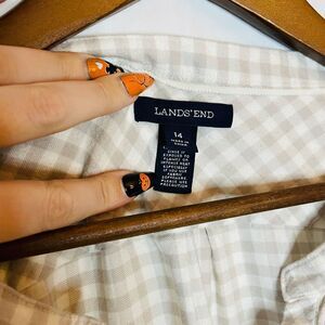 Lands' End Size 14 Flannel Top - Gray Gingham 100% Cotton Collarless