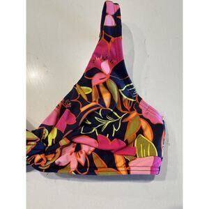 Lands End Size 2 Twist Front Floral Bikini Top Underwire Hawaiin Tropical Print
