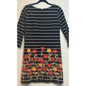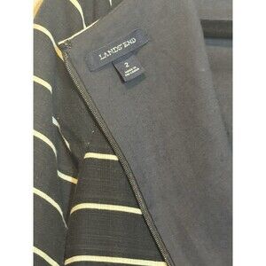 Lands' End Size 2P White Striped Black Ponte Knit 3/4-Sleeve Dress Floral