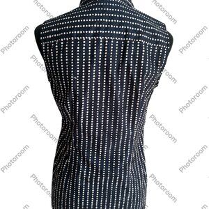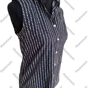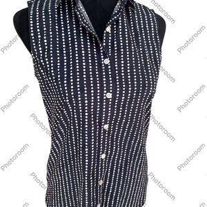 Lands' End Size 4 Navy & Purple Polka Dot Stripes Button Sleeveless Shirt