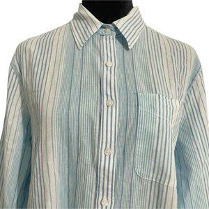 Lands' End Size Medium Top Blouse Button Up Cotton Linen Blend