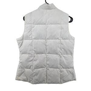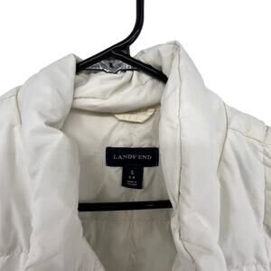 Lands' End Size Small 6-8 Vest Puffer White Pockets Goose Down Fill Snap Closure. Gently used with no rips or stains. Please see photos. Nylon. Fill is 70% goose down feathers and 30% feathers.