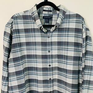 Lands' End Size XL Tall Sail Rigger Oxford Plaid Button Up Shirt Long Sleeve