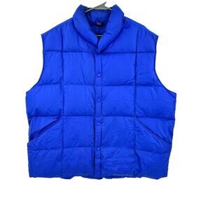 Lands End Size XXL Puffer Vest Blue Quilted Down Insulated Full Zip Outerwear