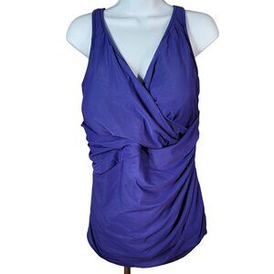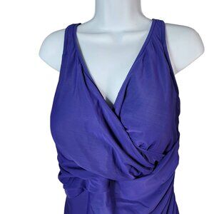 Lands' End Skirted Swimsuit Purple 24W V Neck No Wire Wrap One Piece Slimming
