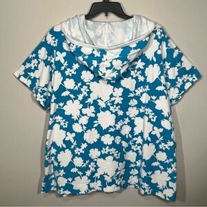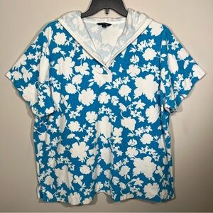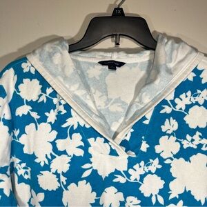 Lands' End Sky Blue and White Floral/Tropical Towel Material Coverup w/ Hood