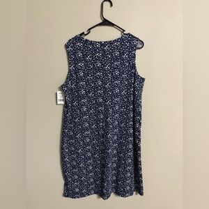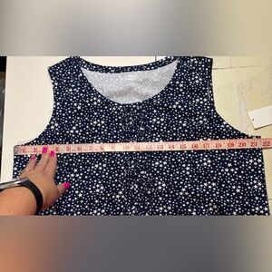 Lands End Sleeveless Cotton Tank Dress Blue Stars Print Pintuck Size Large New