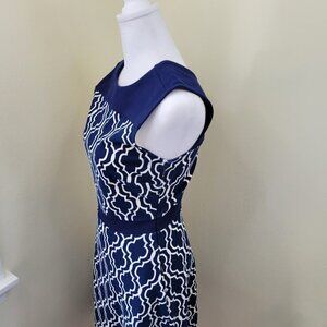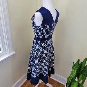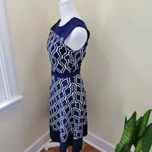 Land's End Sleeveless Fit & Flare Dress Geometric Print Stretch Navy Size 2