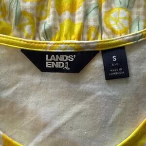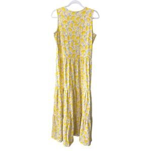 Lands' End Sleeveless Tiered Maxi Dress Small Tank Bright Yellow Lemon Print