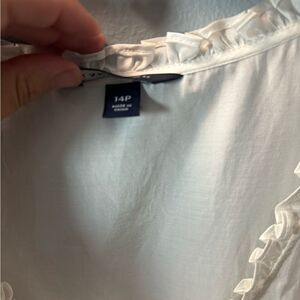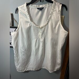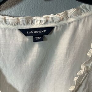 Land's End Sleeveless White Ruffle Blouse Size 14 Petite Swiss/ Baulmole