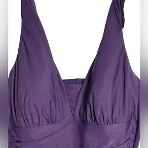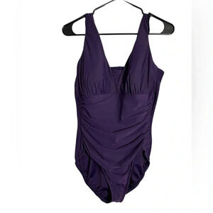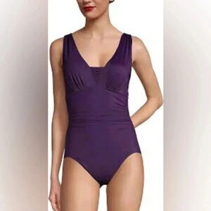 Lands End Slender Suit V-neck Ruched Deep Purple Size 16 Vacation Plus Size