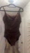 Lands End Slender Tummy Control Swimsuit ruched gems bejeweled size 14 brown