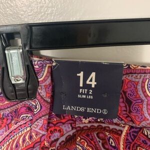 Lands End Slim Twill Pants Size 14 Berry Rouge Print NWT
