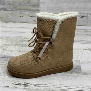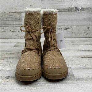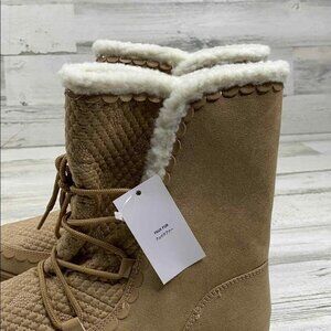 Lands' End Slipper Boot Youth Girls 6M Tan Sherpa Lined Lace Up NEW