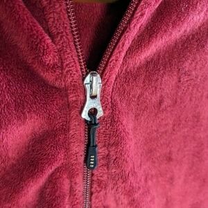 Lands' End Small Red Cozy Hooded Full Zip Sweater w/ Cinch Waist