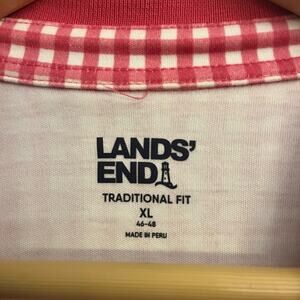 Lands’ End pink and white check smooth knit polo shirt. Size XL