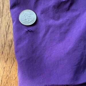 Warm Lands End snow bibs, perfect for playing in the snow, sledding, tubing, and skiing. One small cut near the boot cuff, as shown in comparison with a quarter coin.