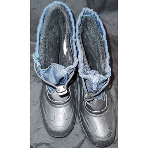 Lands End Snow Winter Boots Black and blue Waterproof Zipper & Draw String at Top Boys 2