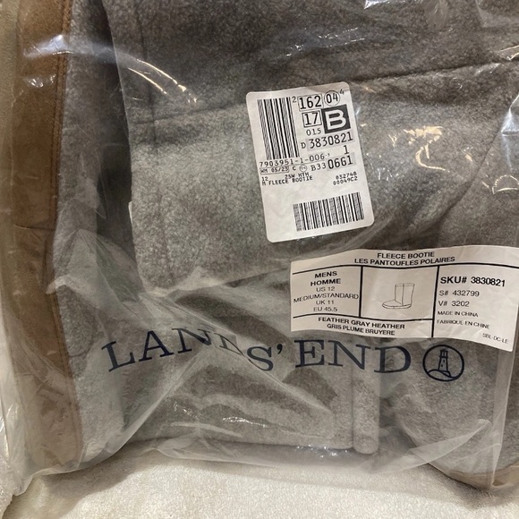Lands' End Soft Gray Fleece leather Booties brand new, and sealed package Sz 12
