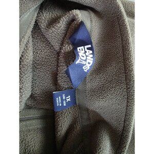 The Lands' End XL Fleece Quarter-Zip Pullover offers warmth and comfort. Made from polyester, this pullover is perfect for casual outings or layering in cool weather. The green color provides a versatile and stylish look for any wardrobe.