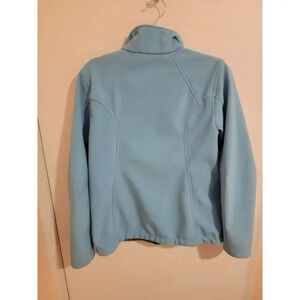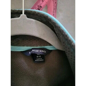 Add a pop of color to your outdoor wardrobe with this turquoise Lands' End Softshell jacket womens Medium (10). The jacket features a zip-up front and zip pockets to keep your belongings safe. It's made of polyester and has a soft shell for added warmth.