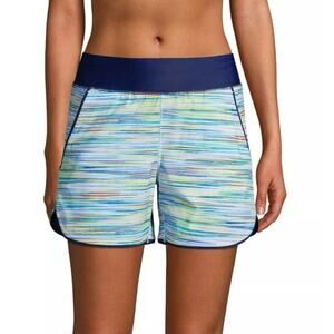 Lands End Space-Dye 5" Swim Board Shorts Womens Size 16 XL Blue Panty Liner NEW