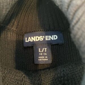 Lands’ End Split Neck Cable Knit Women’s Large Tall 14-16 Black Cotton Sweater